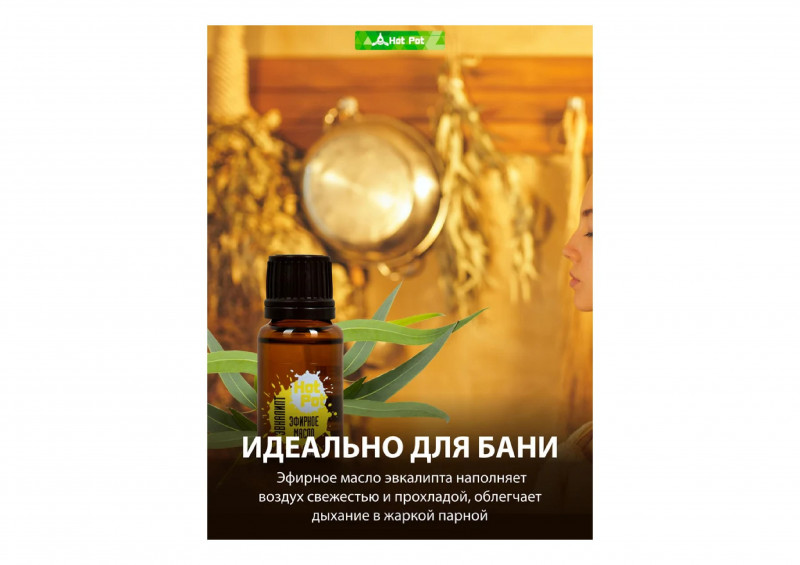 Эфирные масла «Hot Pot» сделают банные процедуры еще полезнее. Их аромат усиливает расслабляющее действие бани и сауны. Проникая с паром в кожу и кровь, масла избавляют от мышечного напряжения, ускоряют выведение токсинов и лишней жидкости.