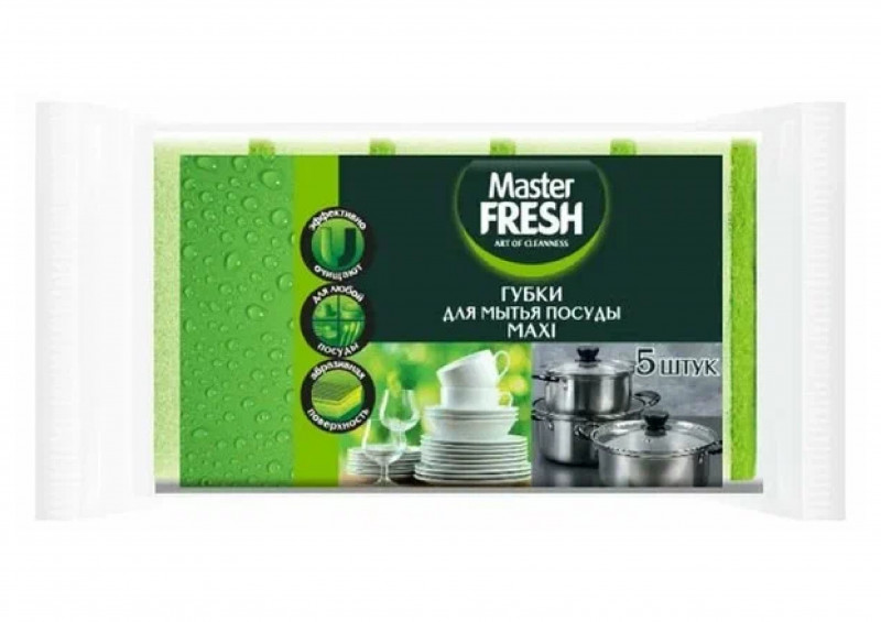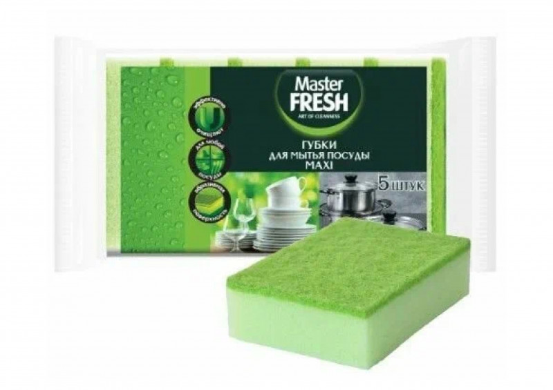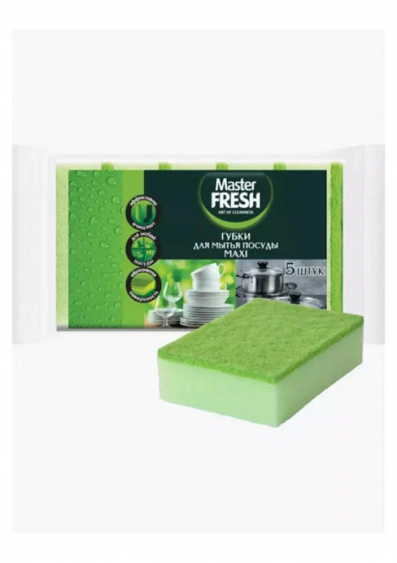 Губки для мытья посуды Master FRESH MAXI эффективны благодаря абразивному слою.