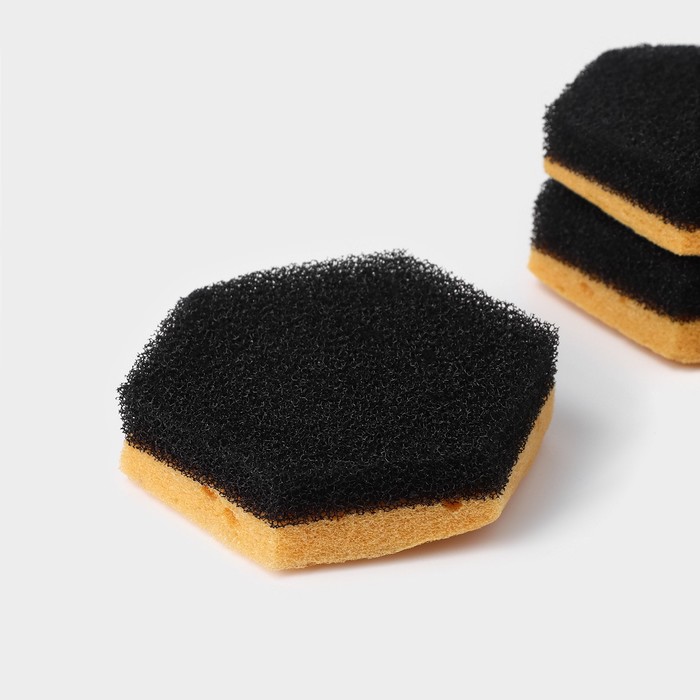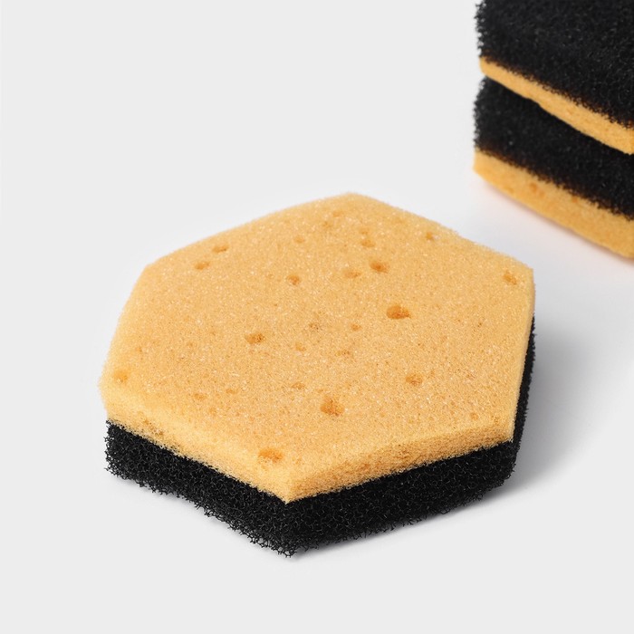 Губка для тефлоновой посуды изготовлена из специального материала и имеет два слоя. Первый — это поролон с антибактериальным покрытием, не оставляющим без следов и повреждений. Второй — абразивный, который представляет собой микрофибру. Именно он создаёт много пены для быстрого и качественного удаления грязи.