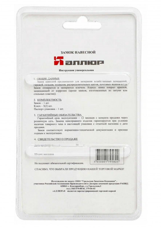 Замок навесной ВС2С-501 d-9мм Аллюр черный в наличии по цене 650 рублей в интернет-магазине «ЖЕЛЕЗО» в в Елабуге. Мы предлагаем лучшую стоимость на категорию замок навесной. Приобрести Замок навесной ВС2С-501 d-9мм Аллюр черный можно оформив заказ в интернет-магазине, или отправив заявку по почте, а также по телефону 8 (800) 444-50-26 или в магазине. Бесплатная доставка при заказе от 1000 руб.