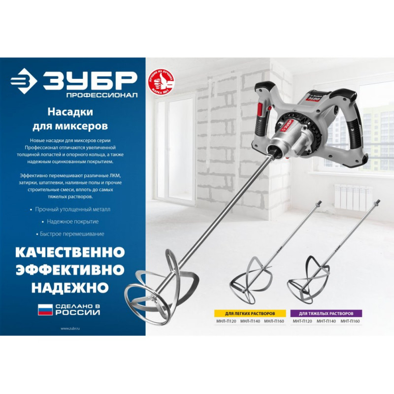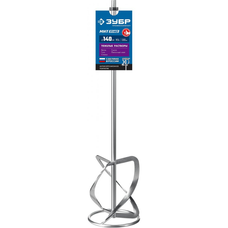 Насадка с лопастями для перемешивания тяжелых растворов (бетон, гипс, стяжка, смола, плиточный клей, известково-глиняный раствор). Используется совместно с ручными миксерами ЗУБР ЗМР-1200Э-1, МР-1050-1, МР-1100, МР-1400-2 и МР-1600-2. Не поддается коррозии и не деформируется даже при эксплуатации в тяжелых условиях. Сделано в России